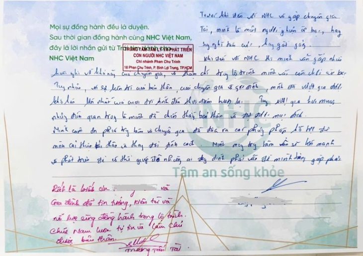 Sau buổi tham vấn, P.N đã quyết định tham gia chương trình hỗ trợ gỡ rối tâm lý chuyên sâu, chuyên biệt với sự đồng hành của Chuyên gia Tâm lý Trương Tấn Tài (Chi nhánh Phan Chu Trinh).